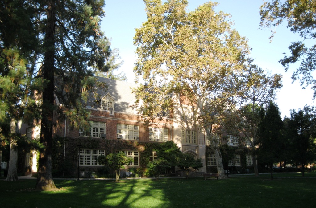 The university is known for – among other things – the beautiful campus in Stockton, where it moved in 1924. Lots of brick buildings that give it a definite East Coast/Ivy League look and feel. It also reminds me of the Gorham campus of University of Southern Maine where I attended college before moving to California. Take a look at Pacific’s campus: