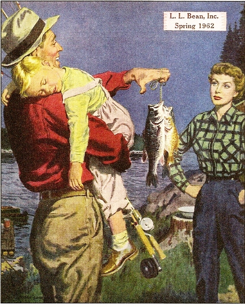 A few years ago L.L. Bean, the outdoors outfitter based in Freeport, Maine, produced a set of note cards and on the cover of each was a nostalgic image highlighting outdoor activity. I have gone through the box of note cards except for one and it shows a father carrying two fishing rods, a stringer of fish, and an exhausted child. Mother, hands on hips, seems a tad upset that Dad has kept Junior out too long fishing.